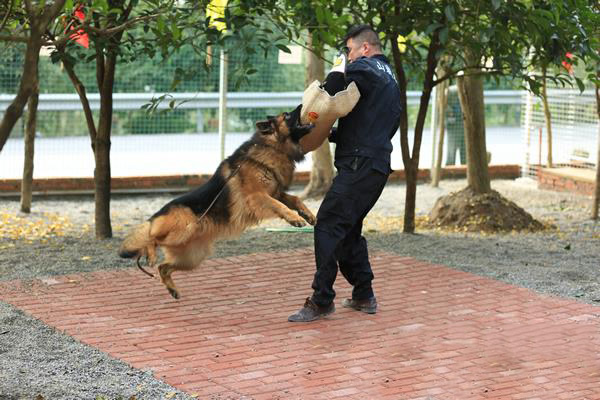 在廣東得安保安服務(wù)公司犬防訓(xùn)練基地,威猛高大的工作犬和身形矯健的訓(xùn)導(dǎo)員相得益彰,在人工障礙物上下騰、轉(zhuǎn)、挪、移。揮汗如雨的訓(xùn)練,為的是關(guān)鍵時刻能沖鋒在前,圓滿完成任務(wù)。鄒偉學(xué)便是這支訓(xùn)導(dǎo)員隊(duì)伍中的佼佼者