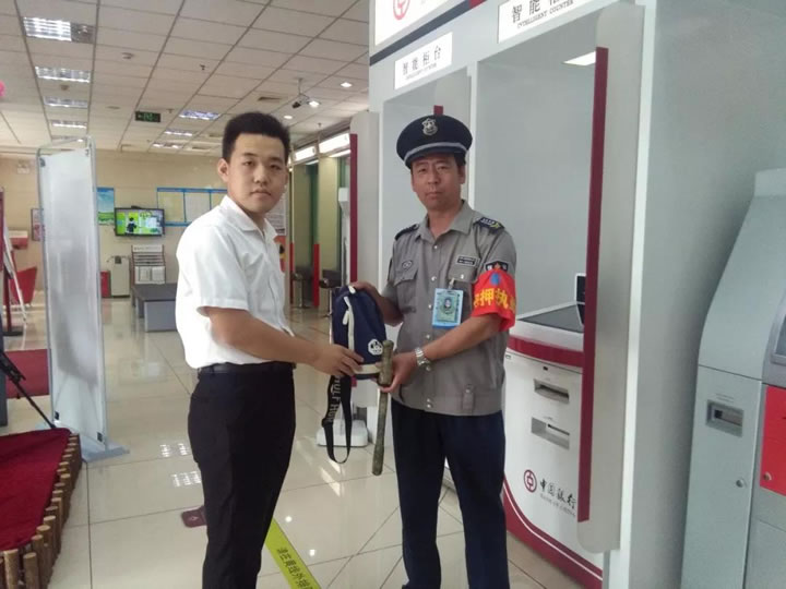 得安守護(hù)三大隊(duì)五駐某銀行保安員王亮執(zhí)勤時(shí)在柜臺(tái)上撿到一個(gè)挎包,包內(nèi)裝有多張銀行卡和重要票據(jù)以及個(gè)人證件。保安員第一時(shí)間妥善保管并上報(bào)客戶單位領(lǐng)導(dǎo),不久失主前來找尋,確認(rèn)失主身份后,王亮親手將挎包歸還,失主感激萬分,對(duì)保安員連連道謝。