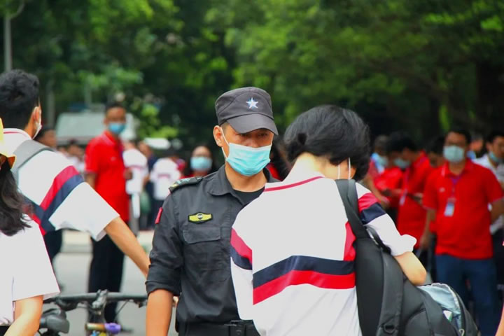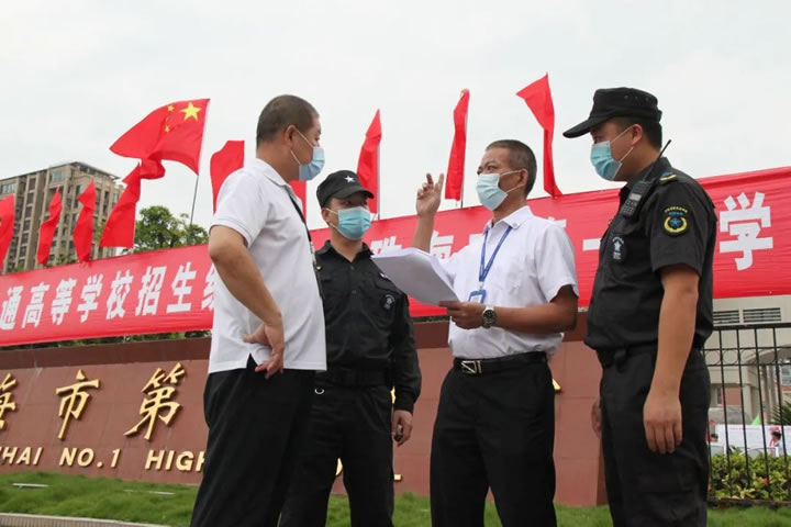 為保障高考順利進(jìn)行,花都保安服務(wù)公司高度重視,專門成立高考行動(dòng)小組,多次召開專題會(huì)議研究部署,精心制定考期安保方案,編制布崗地圖,明確職責(zé),細(xì)化措施,密切配合教育主管部門、公安機(jī)關(guān)及各考點(diǎn)學(xué)校,細(xì)化量化工作任務(wù),在市一中、市二中、市三中、斗門一中、市實(shí)驗(yàn)中學(xué)、北師大花都附中和省實(shí)金灣學(xué)校原有當(dāng)值安保人員的基礎(chǔ)上增設(shè)安保力量,全力做好安全風(fēng)險(xiǎn)隱患排查、現(xiàn)場(chǎng)安保護(hù)衛(wèi)、交通指引和停車管理、疫情防控等安保工作。高考前后及高考期間,7個(gè)考點(diǎn)的近百名花都保安員放棄休假,實(shí)行24小時(shí)不間斷輪崗值守制度,確保2021年高考萬無一失。