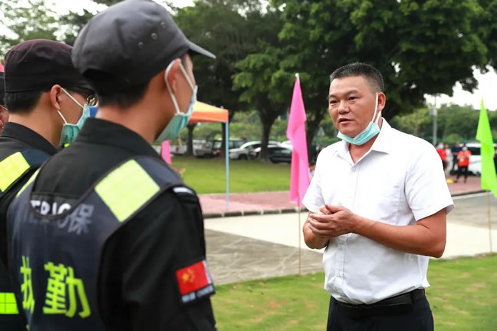 6月7日早上6點(diǎn),花都保安公司總經(jīng)理呂汝由帶領(lǐng)現(xiàn)場(chǎng)執(zhí)勤管理人員進(jìn)一步強(qiáng)調(diào)安保要點(diǎn)。
